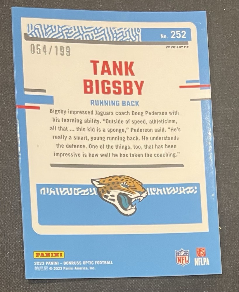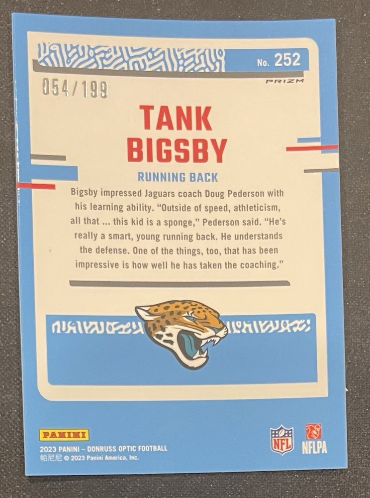 2023 Donruss Optic Football #252 Tank Bigsby Rookie RC Blue Variation #054/199 Jacksonville Jaguars Mint Condition Ships USPS