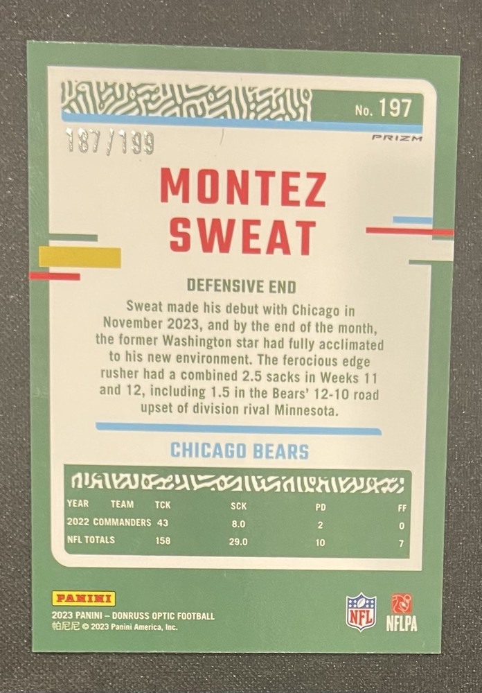 2023 Donruss Optic Football #197 Montez Sweat Blue Variation #/199 Mint Chicago Bears Ships USPS