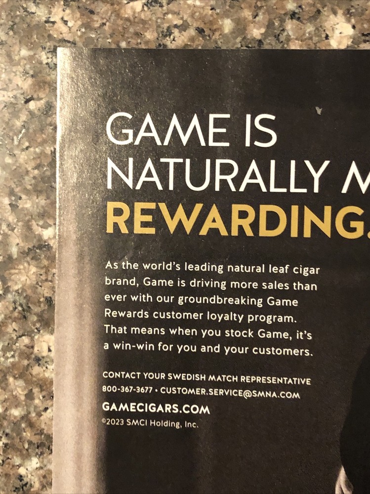 Up for auction is a fantastic print ad for 2023 Game Natural Leaf Cigarillos Cigars. This collectible piece features a captivating design that perfectly captures the essence of the product. The ad is made in the United States and is a must-have for any tobacciana or cigar fan. This rare ad is a great addition to any collection and is guaranteed to impress. Don't miss out on the opportunity to own this piece of history. Bid now and add this unique item to your collection! Original approximate 8”x11” magazine print ad.