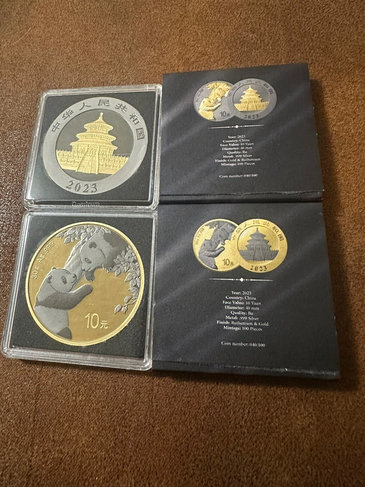 This 10-year coin set from China features a stunning combination of gold and black Ruthenium on .999 silver. The coins are uncirculated and come with two in the Denomination of 10 Yuan. The set includes two coins and is a must-have for collectors who appreciate the unique composition of the coins. The coins are authentic and have a silver fineness of 0.999. The coins are part of the PRC (1949-Now) historical period and were manufactured in China. The set falls under the categories of Coins & Paper Money, Coins: World, Asia: China, and PRC (1949-Now). The coins are a great addition to any collection and are sure to impress with their beautiful gold and black Ruthenium composition having each reverse set is perfect.