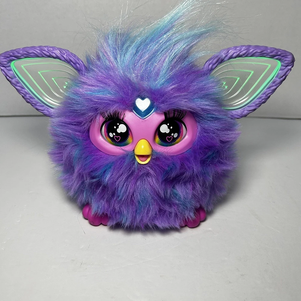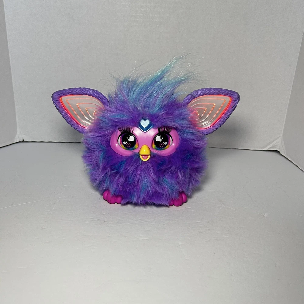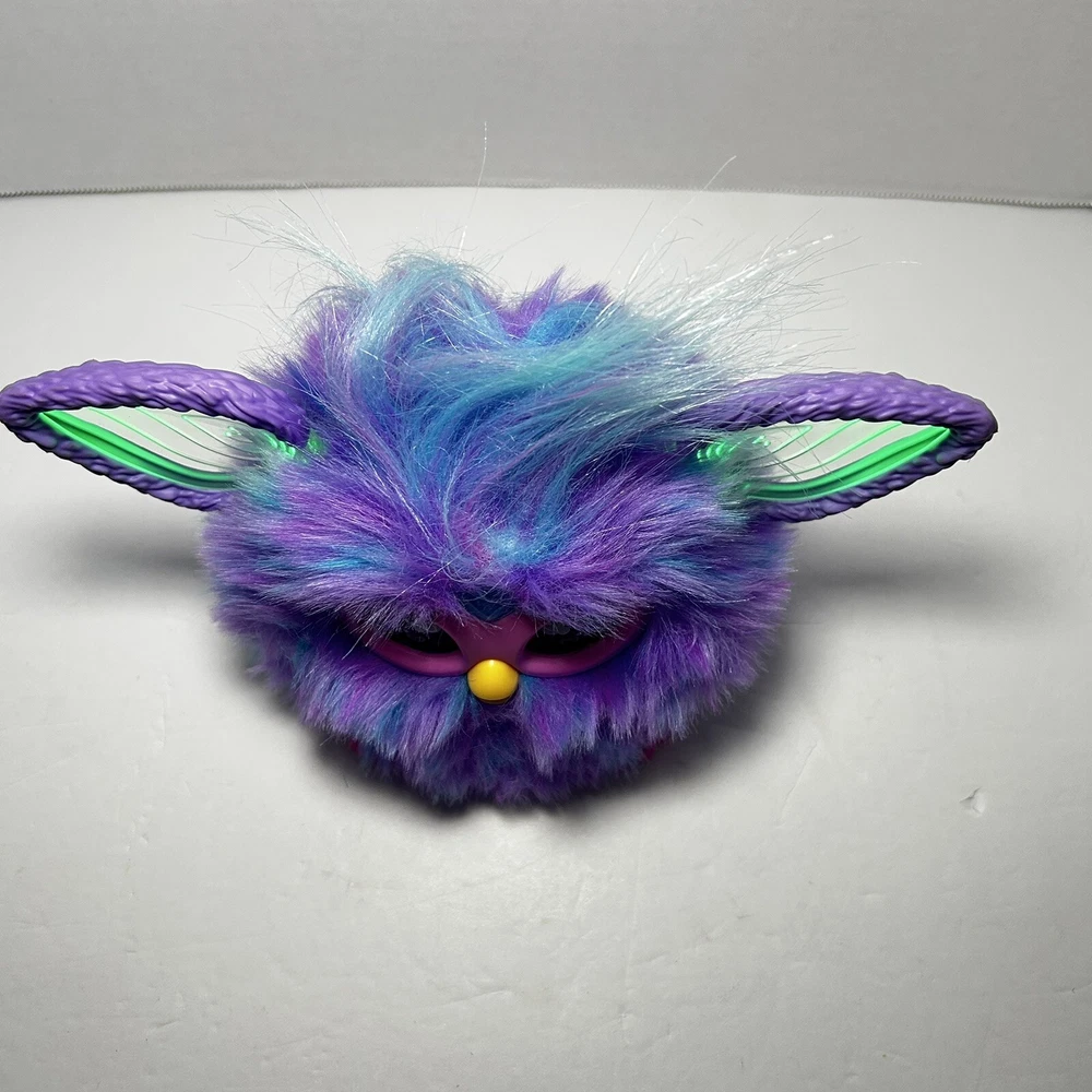 The product is a 2023 Hasbro Furby in a blue and purple plush design. It is an interactive toy that has been tested and confirmed to be in working condition. It belongs to the Furby character family and is suitable for toy enthusiasts interested in electronic and interactive toys.
