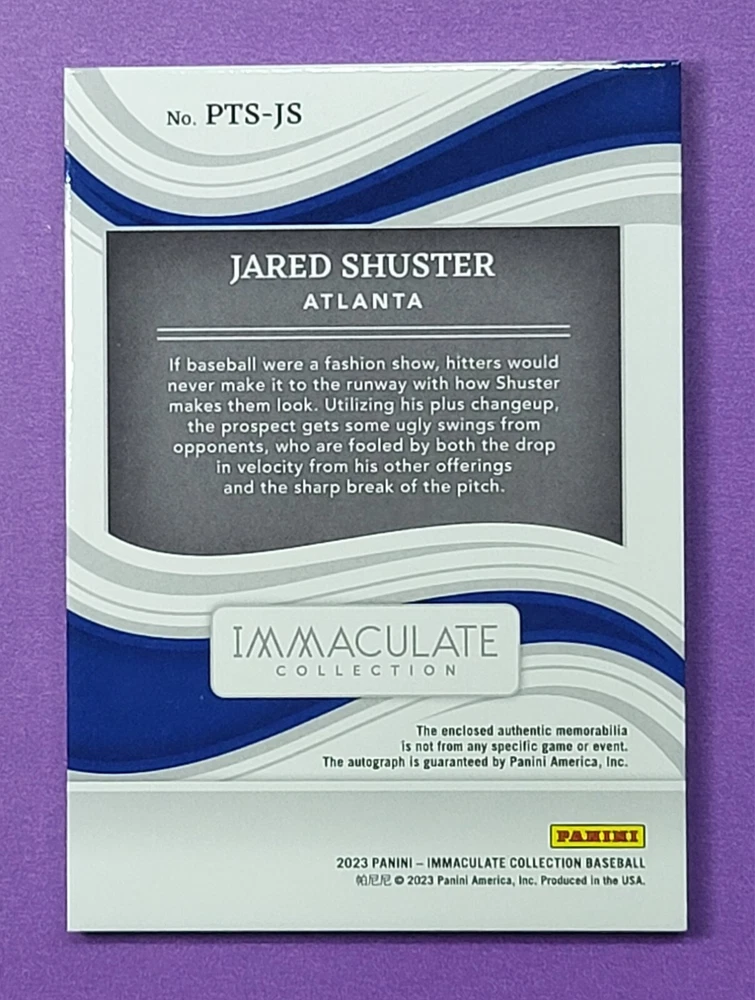 2023 Panini Immaculate *Jared Shuster* 'Prospect Triple Memorabilia Signatures' SSP #PTS-JS On-Card Autograph GREEN SSP Parallel ( Numbered #4/5) Condition: Our items are fresh out of packs with the least amount of handling possible and treated with the utmost care. However, this item is not professionally graded. I encourage you to review the pictures posted to make a final determination. We only sell high grade cards fresh from packs. If we were to sell a card with significant flaws, they would be noted boldly. Feel free to ask questions, we want you to be comfortable and confident in your purchase! Shipping: Packaged very carefully and professionally within 1-2 days of payment...care goes into this step. Combined shipping always available for multiple purchases! Contact: Please contact us with questions or concerns. We want make sure you're happy with your purchase! Thank you! Card Sick