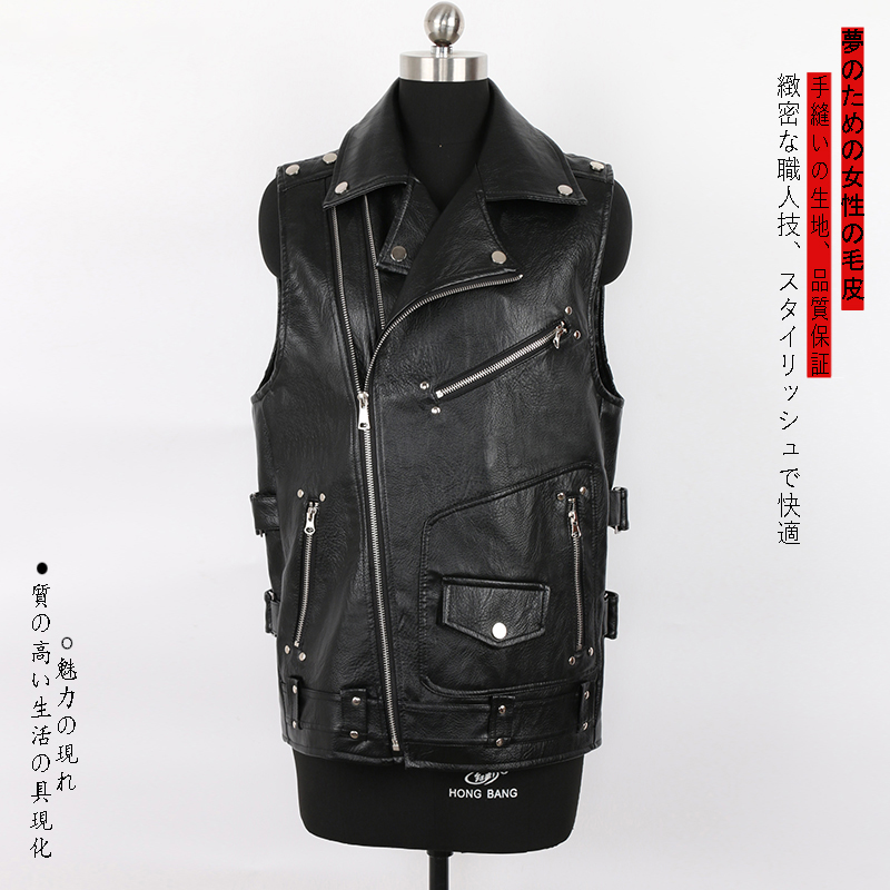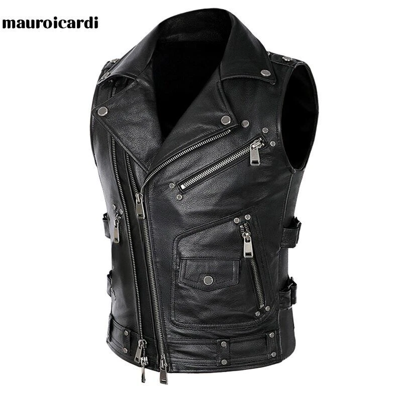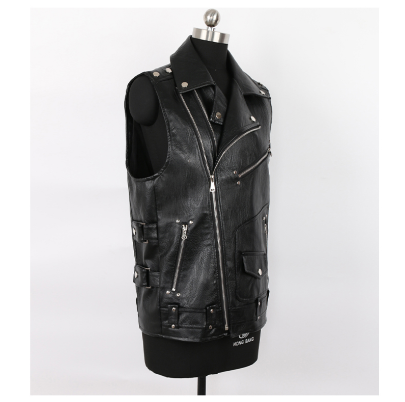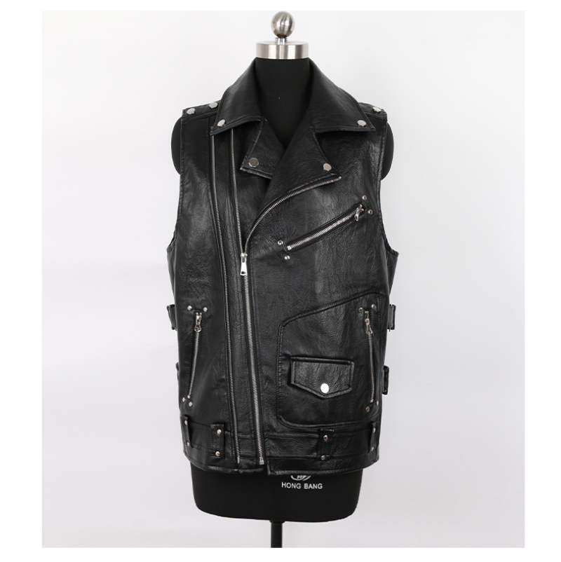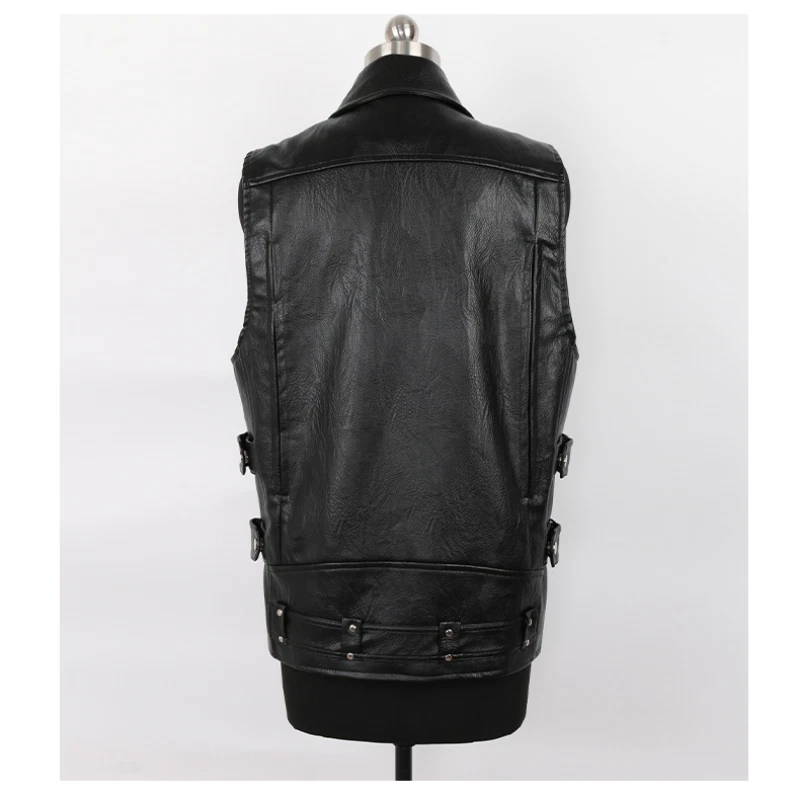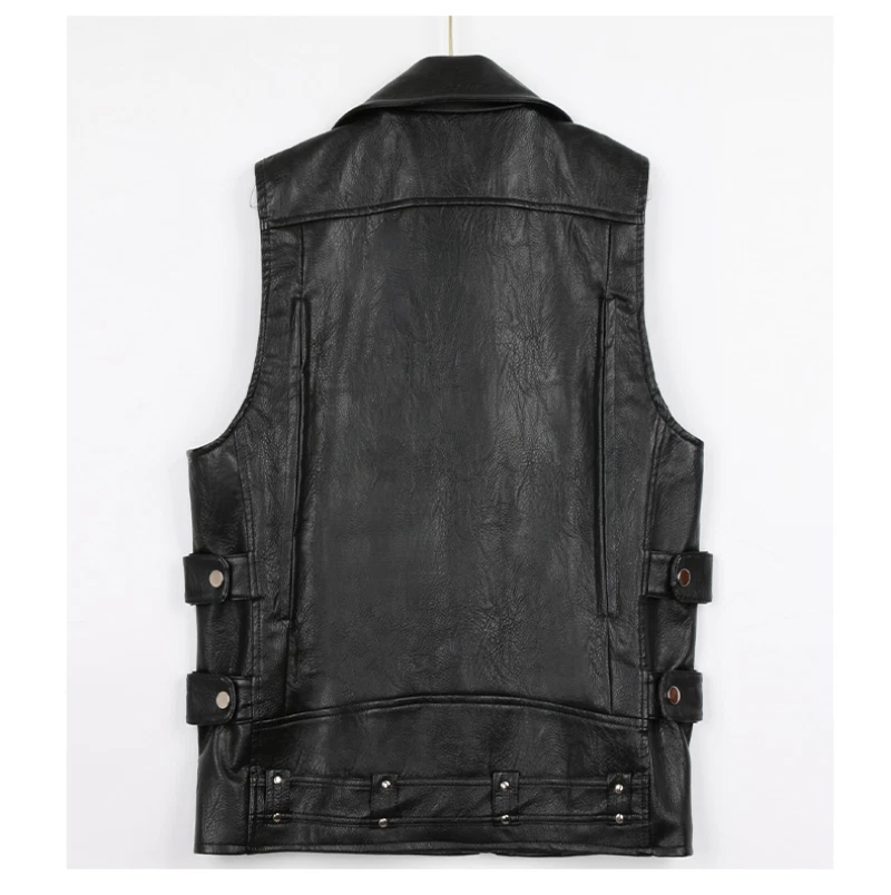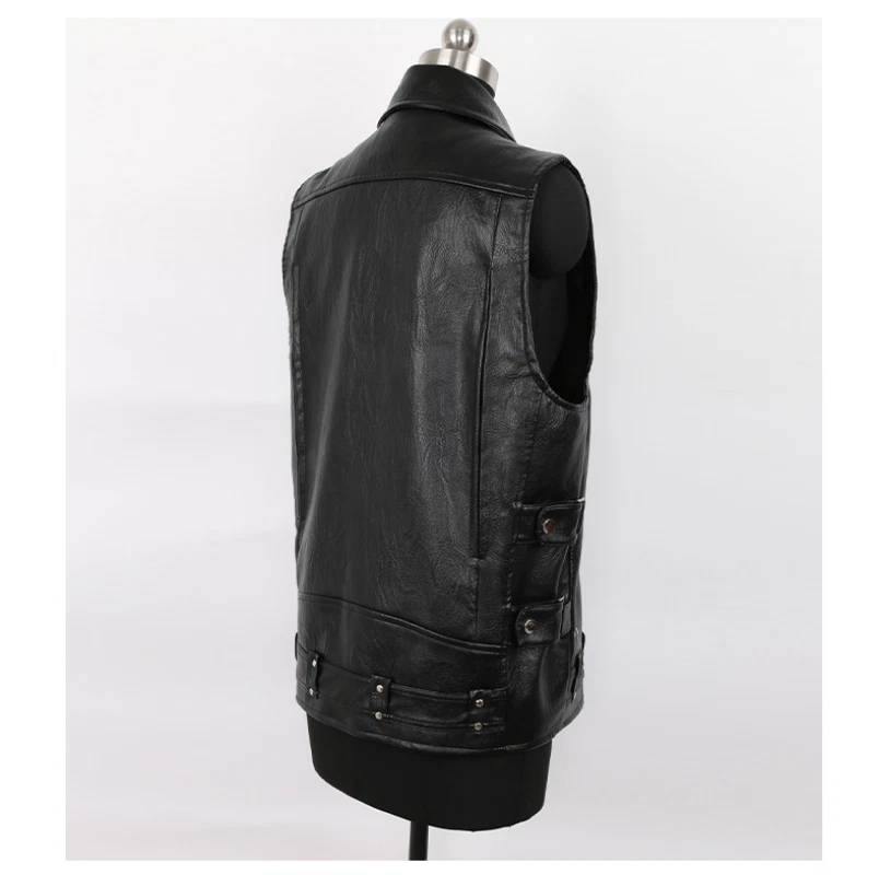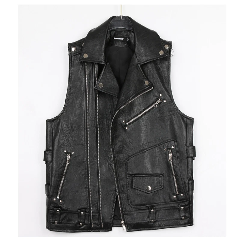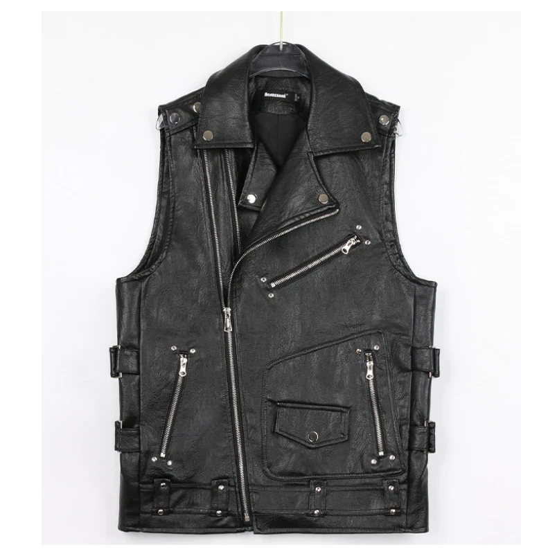 2023 Mens Faux Leather Biker Vest with Zipper Pockets Sleeveless Jacket