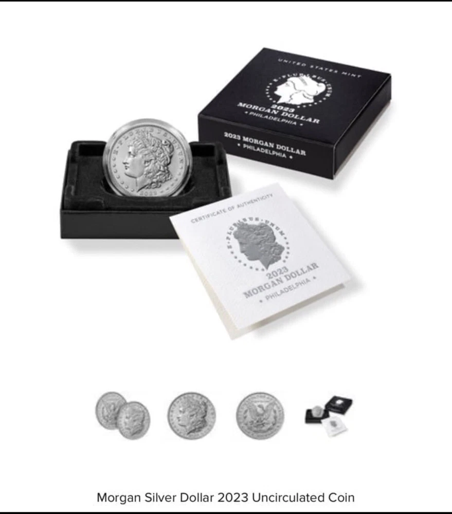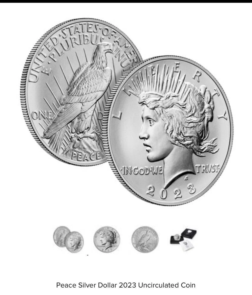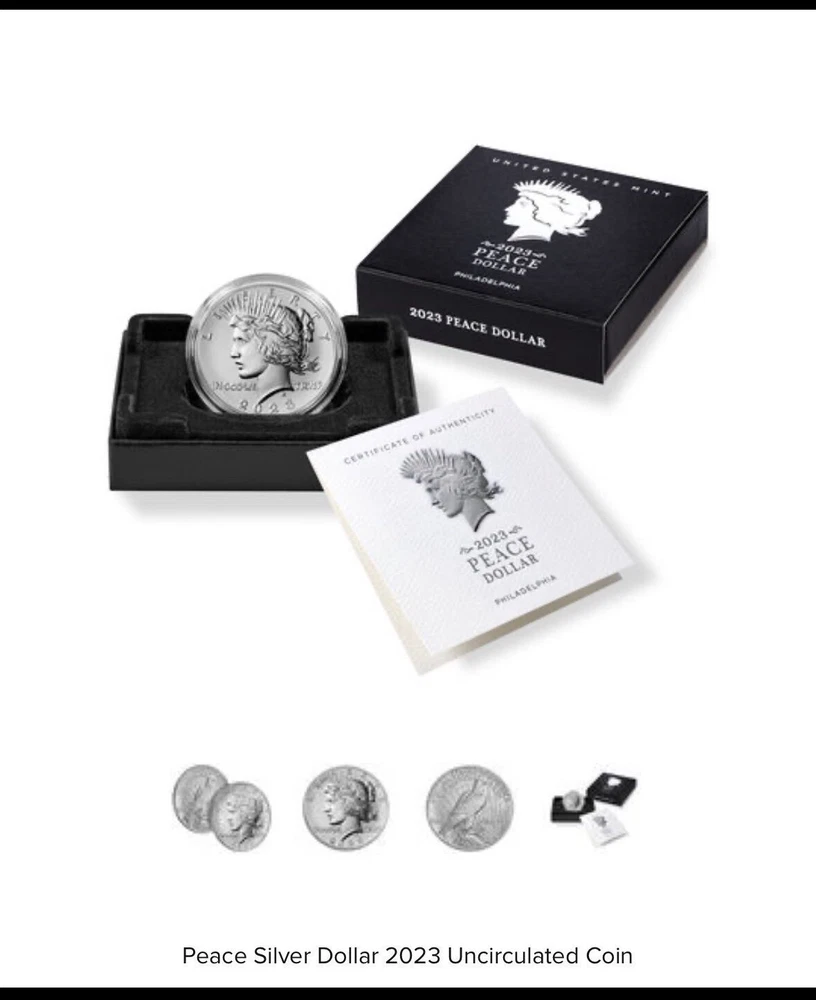 Total Precious Metal Content:1.718 Troy OunceCertification:UncertifiedYear:2023Brand/Mint:U.S. MintFineness:0.999Precious Metal Content per Unit:0.859 troy ozGrade:UngradedCoin:Peace & Morgan DollarStrike Type:BusinessPrecious Metal Content:0.859 Troy OunceComposition:Silver