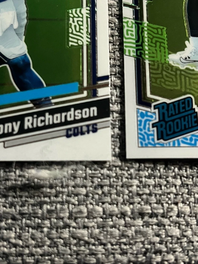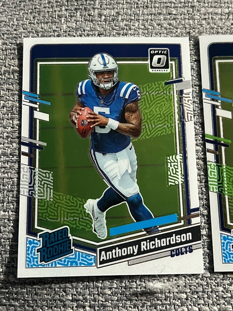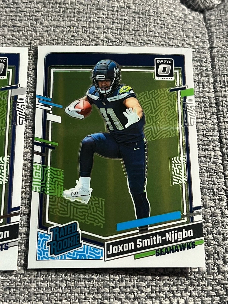 The 2023 Optic Lot includes 2 Rated Rookies: Jaxson Smith-Njigba and Anthony Richardson from the Seattle Seahawks in the National Football League (NFL). These football trading cards are manufactured by Panini on card stock material and feature rookie players from the 2023 season. The cards are original and authenticated by Donruss, suitable for fans and collectors alike.