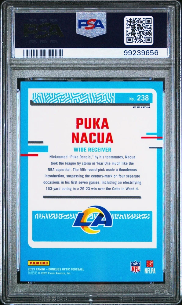 Autograph Authentication:DonrussSport:FootballTeam:Los Angeles RamsSeason:2023Card Number:238Year Manufactured:2023Parallel/Variety:Teal VelocityFeatures:Rookie, Short PrintSet:2023 Panini Donruss OpticLeague:National Football League (NFL)Player/Athlete:Puka NacuaCountry/Region of Manufacture:United StatesManufacturer:DonrussType:Sports Trading Card