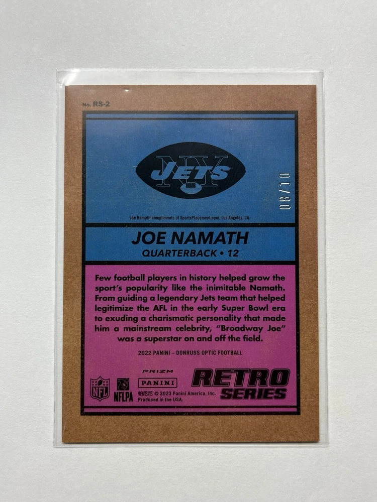 2023 Panini Donruss Optic #RS-2 Joe Namath Retro Series Gold #08/10 - Jets