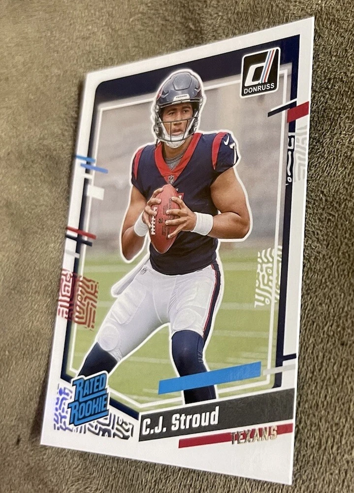 2023 Aqueous Test C.J. Stroud rated rookie card!! This card is in beautiful shape. Surface looks great and so do corners. This card is very rare and you could have a very nice piece to add to your collection! Aqueous test cards are very rare to find and even more rare to see this guys rookie card with it!! Message me for anymore details or questions.