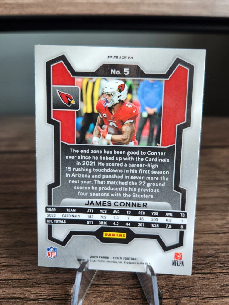 2023 Prizm James Conner Red White and Blue Prizm Card #5. Card will be shipped standard envelope in a penny sleeve and top loader.