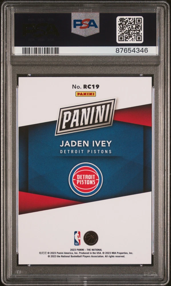 Team: Detroit Pistons Player/Athlete: Jaden Ivey brand: Panini Insert Set: Rookies League: National Basketball Association (NBA) Set: 2023 Panini National Convention Sport: Basketball Print Run: 499 Manufacturer: Panini Features: Serial Numbered, Insert Card Number: RC19 Season: 2023 Series: Panini National Convention