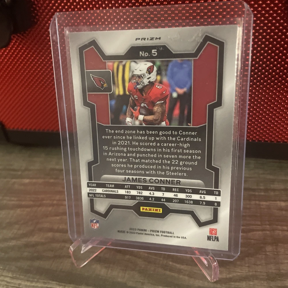 Parallel/Variety:Disco PrizmManufacturer:PaniniSet:2023 Panini PrizmTeam:Arizona CardinalsLeague:National Football League (NFL)Season:2023Sport:FootballPlayer/Athlete:James ConnerFeatures:Parallel/Variety, Base SetCard Number:5Type:Sports Trading Card