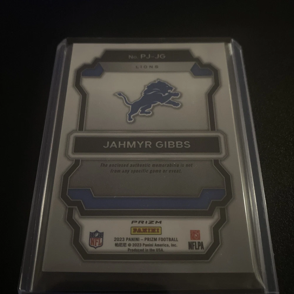 2023 Panini Prizm Premier Jerseys #PJ-JG Jahmyr Gibbs RC Detroit Lions