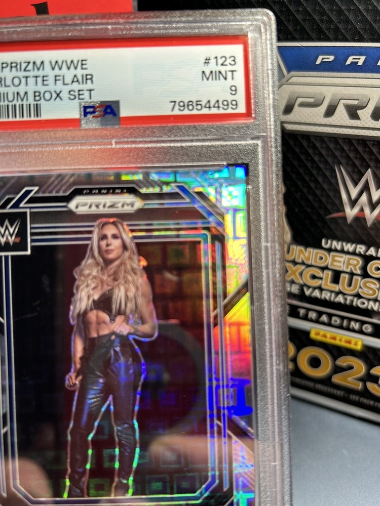 CHARLOTTE FLAIR: 2023 Panini Prizm WWE🔥#/199 PANDORA PREMIUM BOX🔥PSA 9 Mint Card will be well protected and shipping can be combined with other purchases!