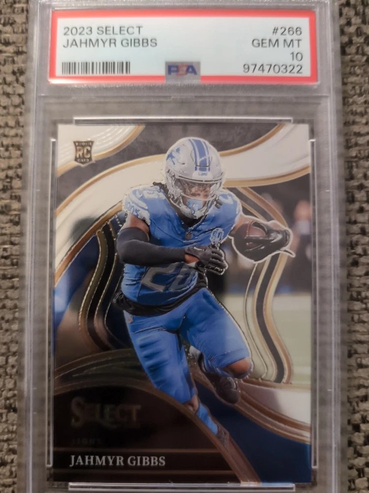 brand: Panini Card Number: 266 League: National Football League (NFL) Manufacturer: Panini Additional Description: Club Level - Jahmyr Gibbs Player/Athlete: Jahmyr Gibbs Sport: Football Subset: Club Level Set: 2023 Panini Select Team: Detroit Lions Series: Panini Select Features: Base Set, Rookie Season: 2023