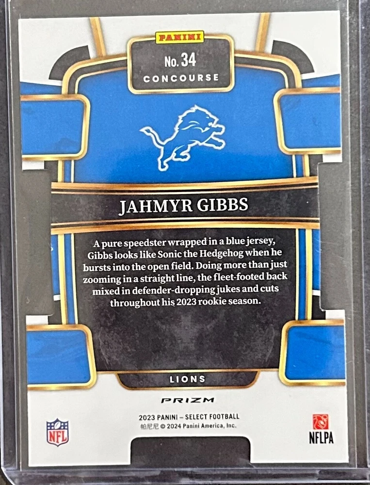 League: National Football League (NFL) Manufacturer: Panini Features: Parallel/Variety, Base Set, Rookie Team: Detroit Lions Season: 2023 Parallel/Variety: Silver Prizm Die-Cut Player/Athlete: Jahmyr Gibbs Set: 2023 Panini Select Card Number: 34 Type: Sports Trading Card Sport: Football
