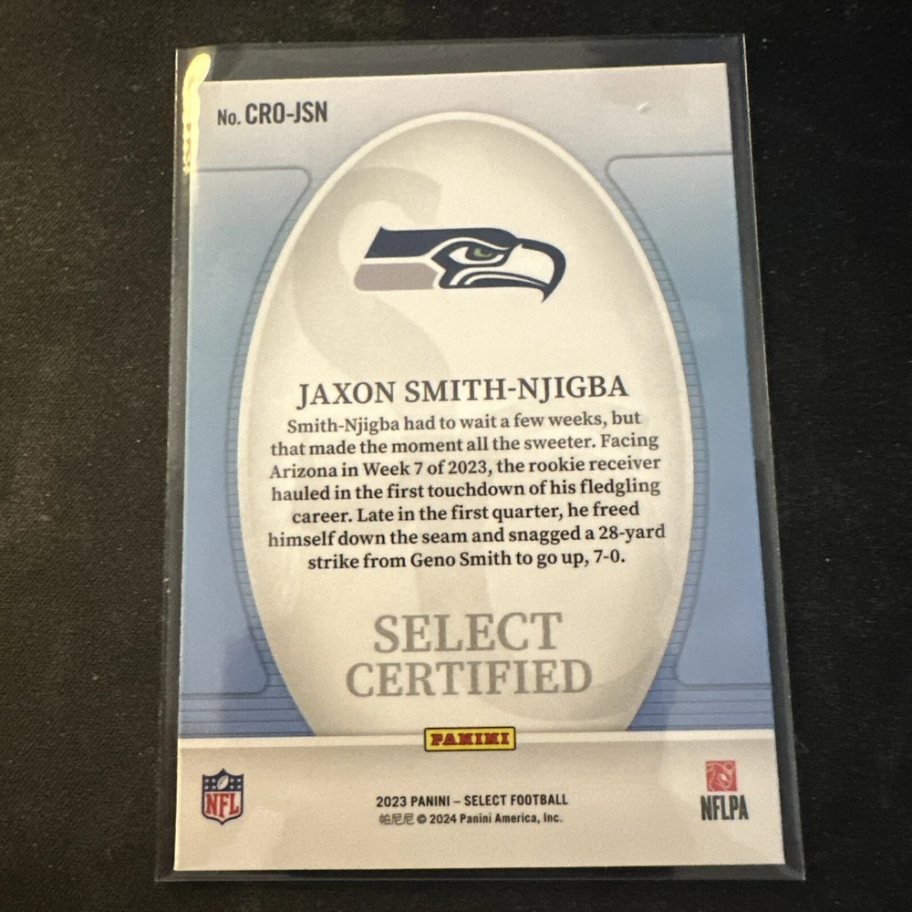 2023 Panini Select Jaxon Smith-Njigba Select Certified RC #CRO-JSN. Condition is Ungraded. Shipped with eBay Standard Envelope for Eligible Items up to $20.