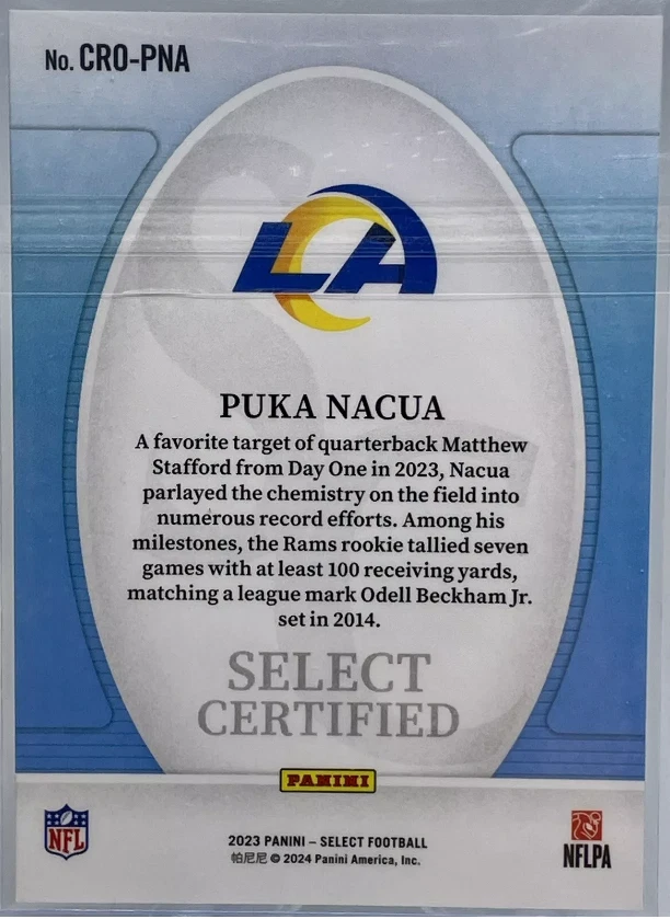 2023 Panini Select Puka Nacua Select Certified RC #CRO-PNA