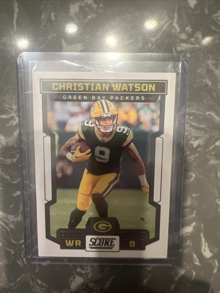 This 2023 Score trading card features Christian Watson of the Green Bay Packers. The card is part of the National Football League (NFL) set and is numbered 93. It is a sports trading card that is near mint or better and has not been graded. The manufacturer of the card is Panini and it is from the 2023 season. This item is perfect for collectors of sports trading cards, especially those who are fans of the NFL and the Green Bay Packers. It is a great addition to any collection and is sure to impress. Don't miss out on the opportunity to own this amazing card!