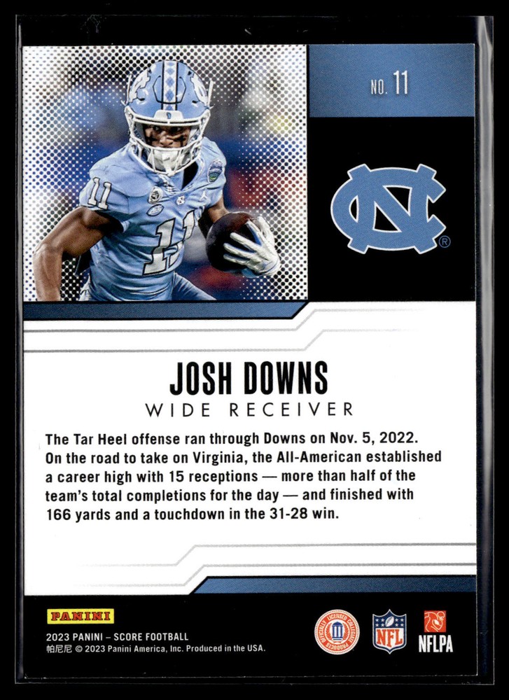 The Card pictured is the card you will receive unless there are multiple quantities then you will receive a card in the comparable grade. Cards in poor condition could have creasing, stains, rounded corners, pen marks or a combo of them. please see pics for a better understanding of cards condition. Excellent North Carolina Tar Heels Protential Josh Downs #11 2023 Score Score 2023 Football .