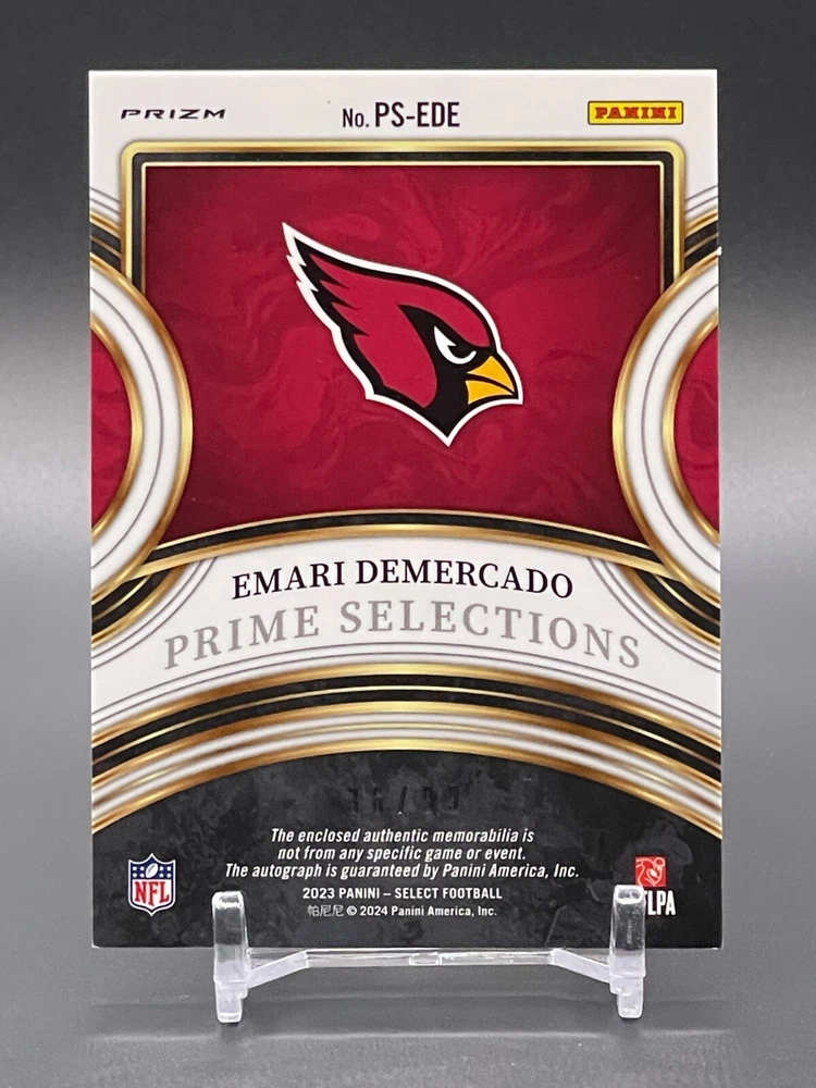Manufacturer: Select Season: 2023 Set: 2023 Select Parallel/Variety: Prime Sport: Football Type: Sports Trading Card Year Manufactured: 2023 Features: Memorabilia, Rookie, Serial Numbered Player/Athlete: Emari Demercado Team: Arizona Cardinals