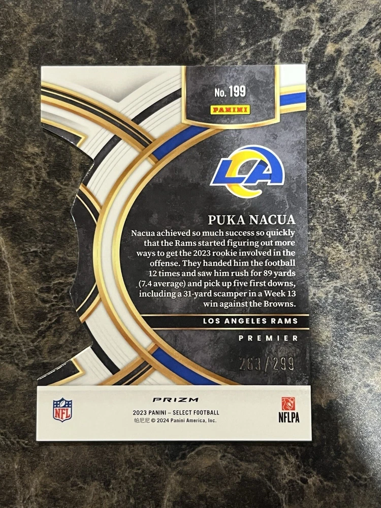 Autographed:NoSeason:2023-24League:National Football League (NFL)Card Size:StandardPrint Run:SPCountry/Region of Manufacture:United StatesSport:FootballYear Manufactured:2024Team:Los Angeles RamsSet:2023 Panini SelectParallel/Variety:BronzePlayer/Athlete:Puka NacuaFeatures:Chase, Parallel/Variety, Rookie, Short Print, Die-Cut, Red & Blue PrizmCard Name:Bronze Die CutCard Number:199Manufacturer:PaniniType:Sports Trading Card