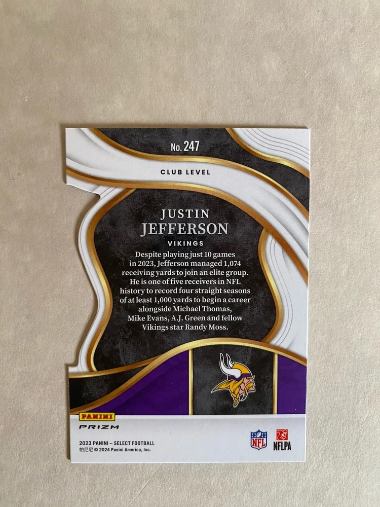 2023 Select🔥Justin Jefferson🔥Club Level YELLOW COLOR MATCH Die Cut VIKINGS Shipped with eBay Standard Envelope PWE for Trading Cards (plain white envelope). Always in sleeved and in top loader