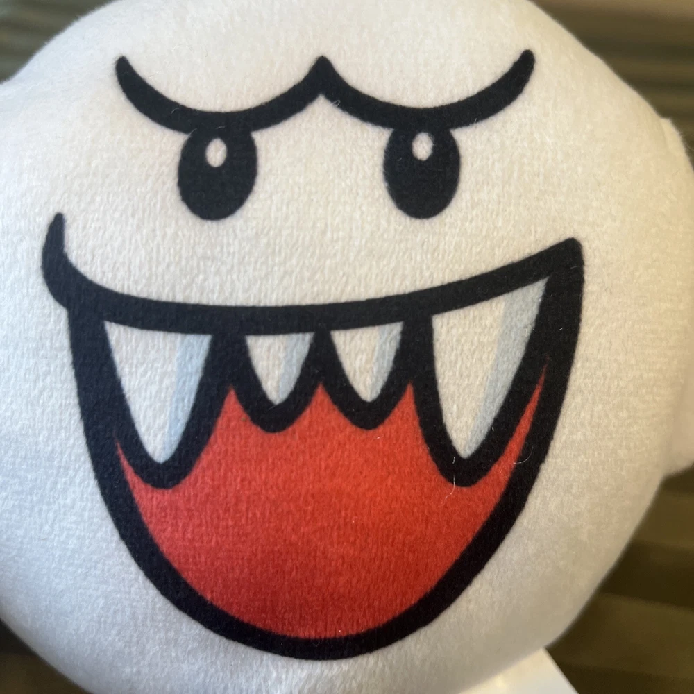 Embark on a whimsical adventure with the 2023 Super Mario Boo Plush, a charming companion for fans of the iconic video game series. Crafted with care, this plush toy features the beloved ghost character in a classic white color, capturing the essence of Boo's playful spirit from the Super Mario Bros. universe. Measuring a cozy small size of 6-8 inches, this plush is perfect for cuddles and display, making it a versatile addition to any collection. Whether for a dedicated Nintendo enthusiast or as a delightful gift, the Boo plush brings a touch of nostalgia and joy to any setting. It was made by www.goodstuff.com It is hand washable only and features a small string loop on top so the plush can be hung or attached to other items