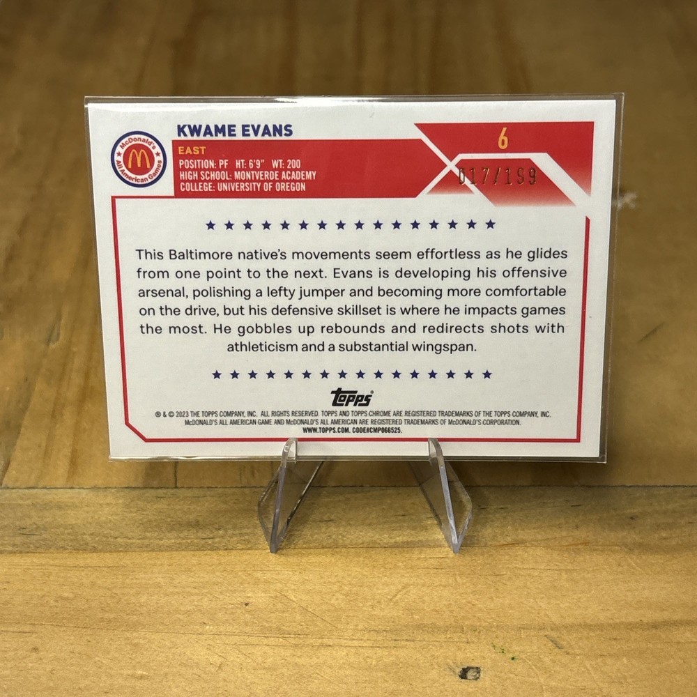 This card is a must-have for any serious collector! The vibrant aqua wave refractor design makes KJ Evans' rookie card pop, and the limited /199 print adds serious value. The crisp detail and premium Topps Chrome quality really stand out. Thrilled to add this gem to my collection—it’s definitely a standout piece!