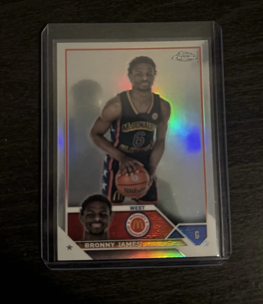 Capture a piece of basketball history with the 2023 Topps Chrome McDonald's All American Refractor #68 featuring rookie sensation Bronny James. This card, a must-have for collectors and fans alike, showcases the prowess and potential of one of the most promising talents in the game today. With its striking refractor finish, the card offers an eye-catching sparkle that makes it a standout addition to any collection.