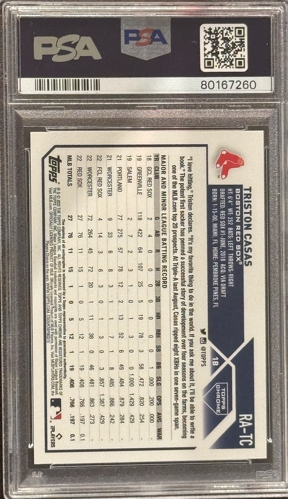 2023 Topps Chrome - Triston Casas Auto - Blue RayWave /150 - PSA 10. Condition is Graded. Shipped with USPS Ground Advantage.