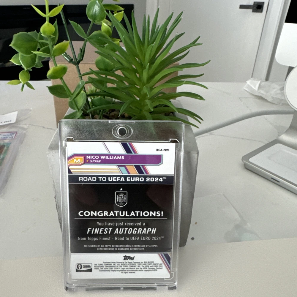 Get your hands on the 2023 Topps Finest Road to UEFA EURO 2024 Nico Williams Debut Auto Green trading card, numbered 29/99. This rare sports trading card features the talented basketball player Nico Williams and is part of the exclusive Topps Finest set. Perfect for any sports trading card collector or fan of the game, this limited edition card is a must-have addition to your collection. Don't miss out on the opportunity to own a piece of sports history with this unique and highly sought-after card.