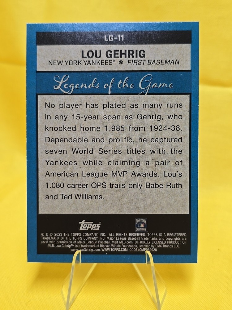 This 2023 Topps Legends of the Game Refractor card features Lou Gehrig, a former Major League Baseball player for the Boston Red Sox. The card is a standard size and manufactured by Topps. It is a part of the 2023 set and is not autographed or vintage. The card is in English and has a parallel/variety feature, making it a great addition to any sports trading card collection. The team featured on the card is the New York Yankees, and it is a must-have for any baseball fan.