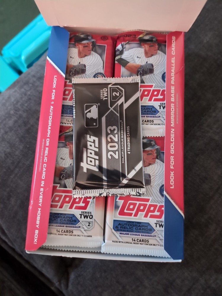 2023 Topps Series 2 hobby box the box you see is the one you receive. The box is open but all packs are sealed.
