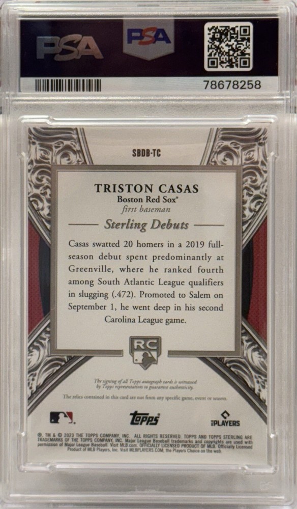 2023 Topps Sterling Triston Casas Sterling Debuts AUTO RELIC /10 PSA 10. Condition is Graded. Shipped with USPS Ground Advantage.