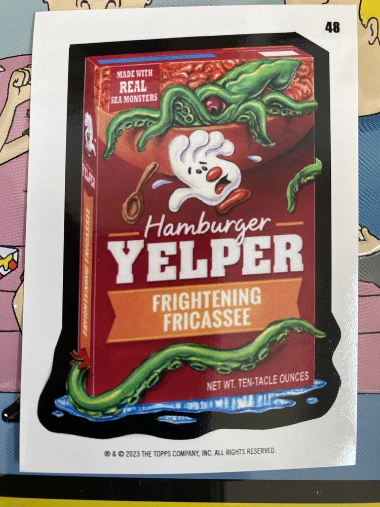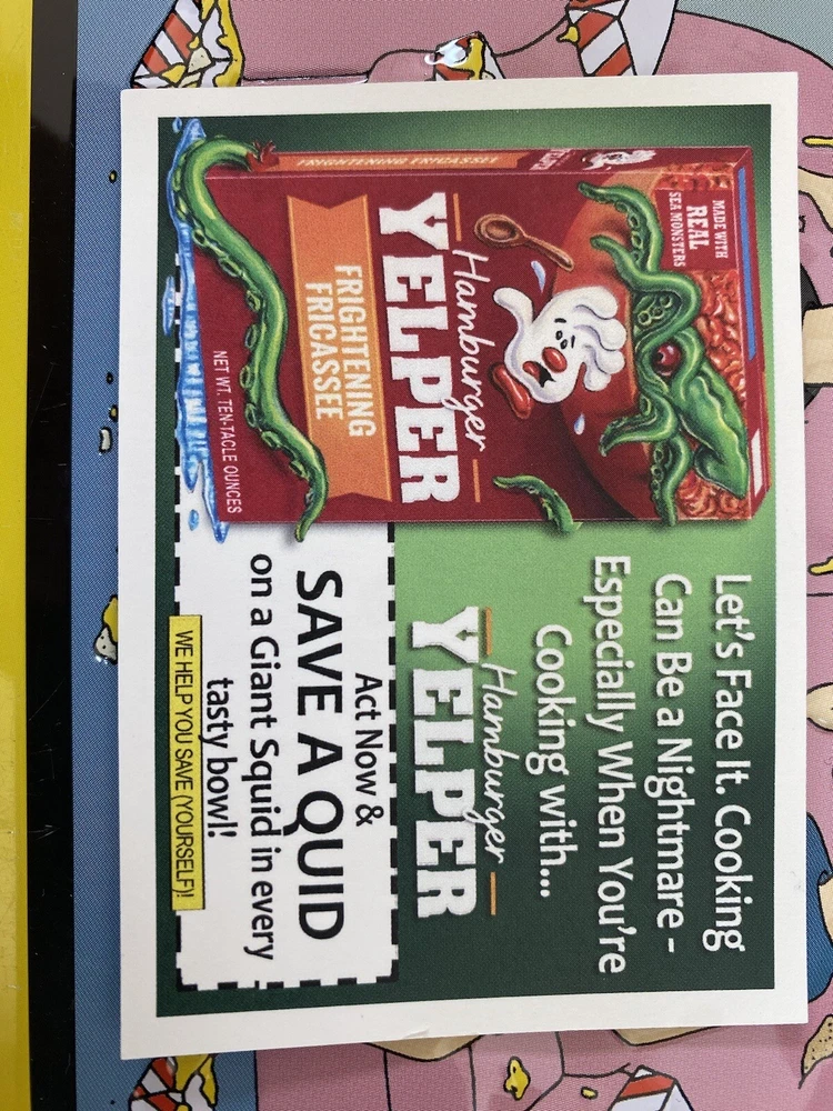This Topps Wacky Packages non-sport trading card is a must-have for fans of parody, satire, comedy, and comics. Featuring the hilarious Hamburger Yelper design and a coupon back, this card is a unique addition to any collection. Made from high-quality card stock and printed in English, this original Topps card is part of the All-New Series 8 set released in 2023. The card is a standard size and has a silver parallel/variety. This Wacky Packages card is perfect for anyone aged 6+ and is an excellent way to add some humor to your collection. The card is an original, licensed reprint and was manufactured in the United States by Topps. Don't miss your chance to add this one-of-a-kind card to your collection today!