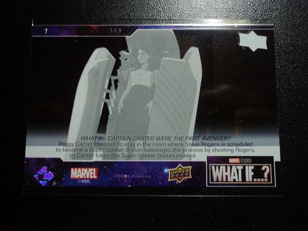PLEASE DO NOT PAY FOR MULTIPLE PURCHASES SEPARATELY ______________________________________________________________________________________________ Here's what you get: Marvel What If ? - Upper Deck - 2023 CHASE CARD CLEAR CUT CHAPTERS - EPISODE 1 # 1 What If...Captain Carter Were The First Avenger? ______________________________________________________________________________________________ Card stored in a smoke-free home. Payment due within 48 hours of purchase. NOTE: IF PURCHASING FROM MORE THEN ONE LISTING, PLEASE DO NOT PAY FOR THEM SEPARATELY, RATHER REQUEST AN INVOICE FROM ME, OR AWAIT RECEIPT OF AN INVOICE FROM ME BEFORE PAYING. When possible, I will combine shipping and handling. A tracking number will be provided on all First Class and Priority packages. You must have a confirmed eBay mailing address. My goal is to provide excellent service to buyers, so I may earn your business over and over. Any questions, please feel free to e-mail me. Please check out my other listings. Happy Collecting. ______________________________________________________________________________________________