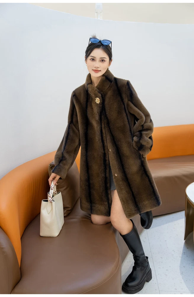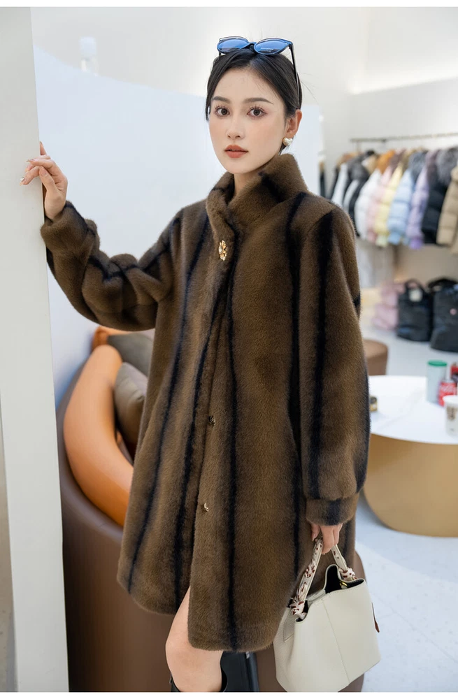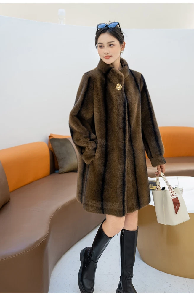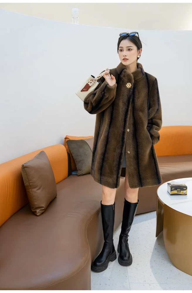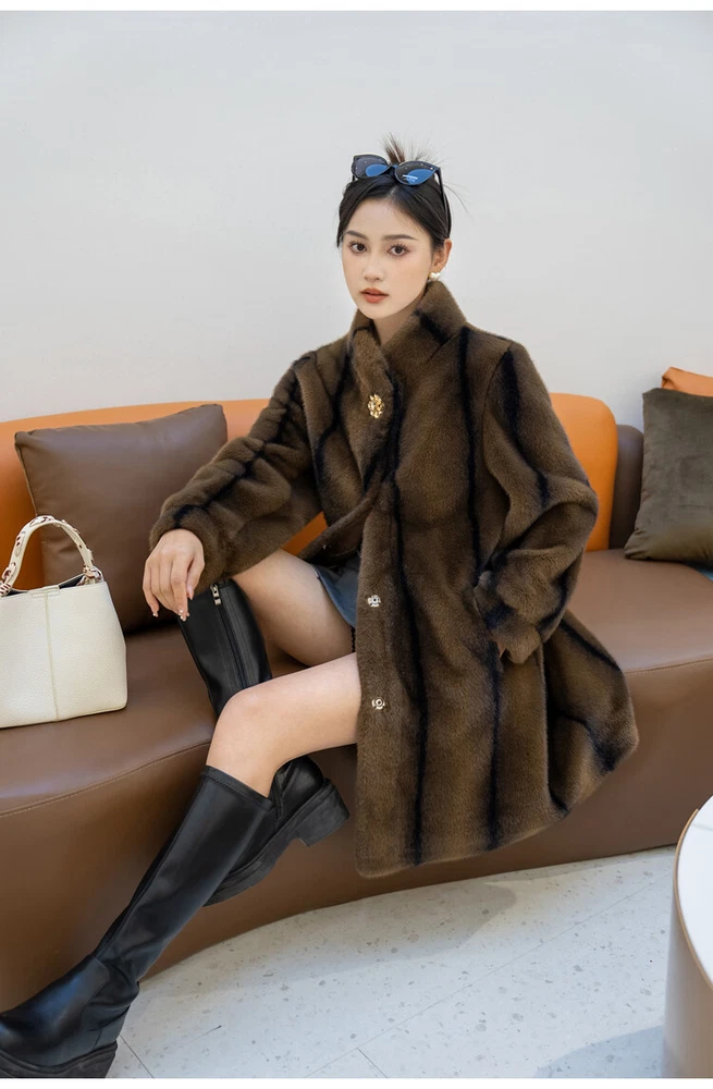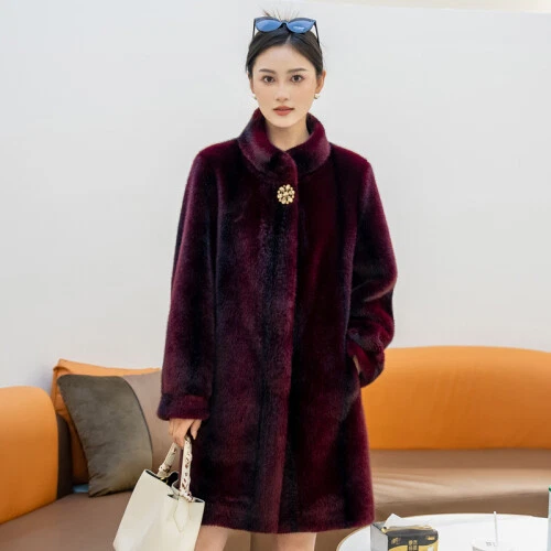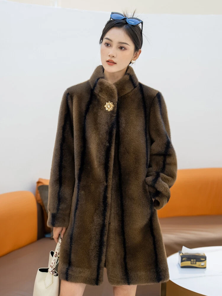 $ 76.99Winter Thickened Long Suit Collar Faux Mink Fur Jacket Furry Coat Parka Winter