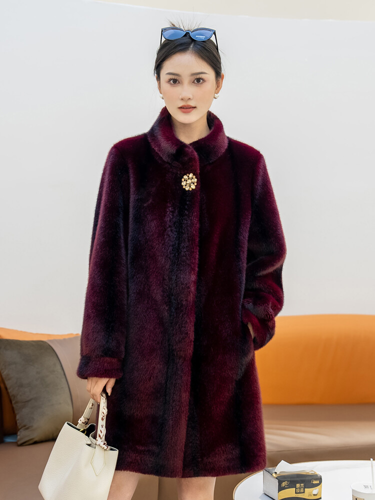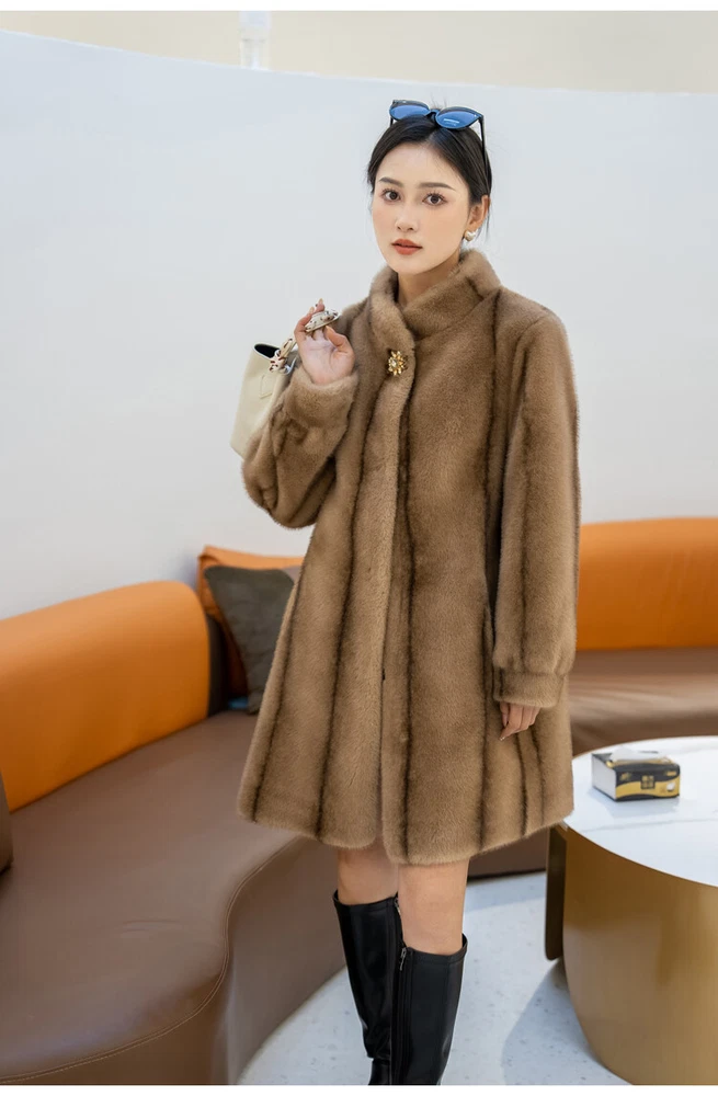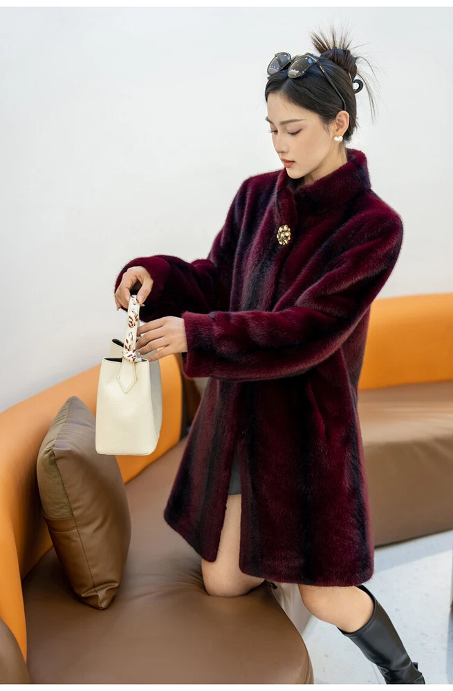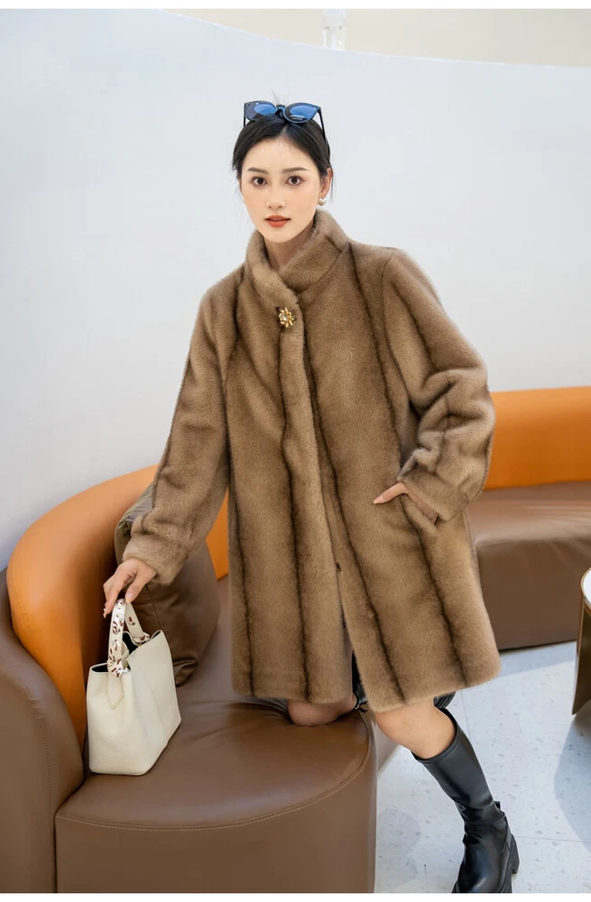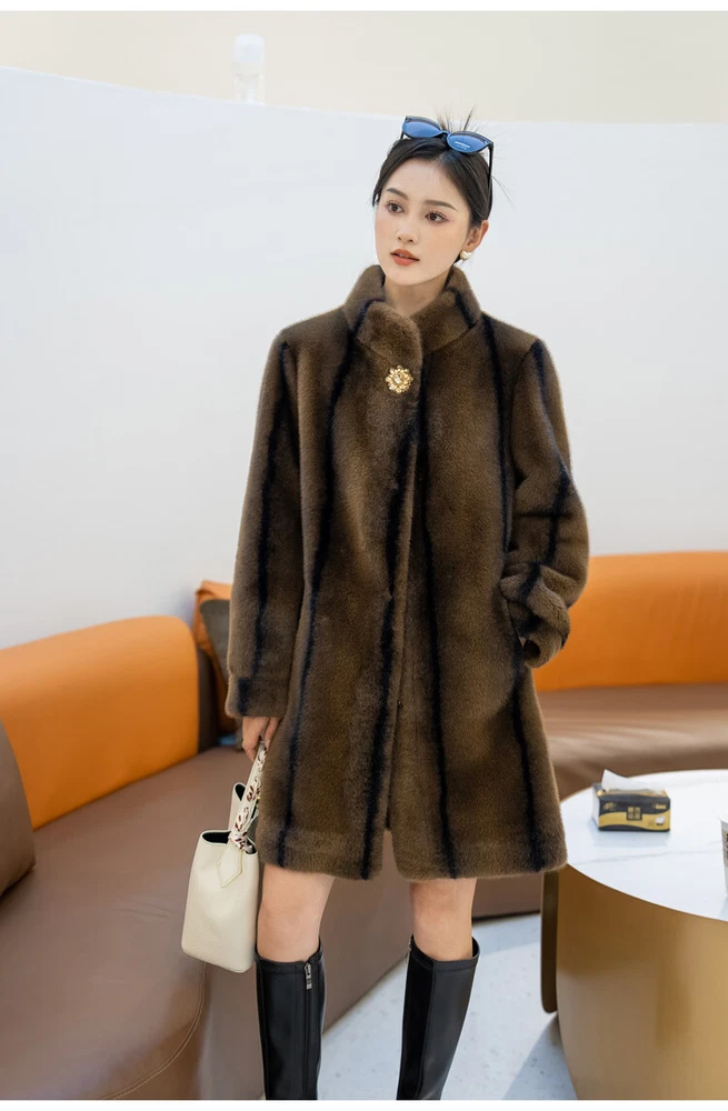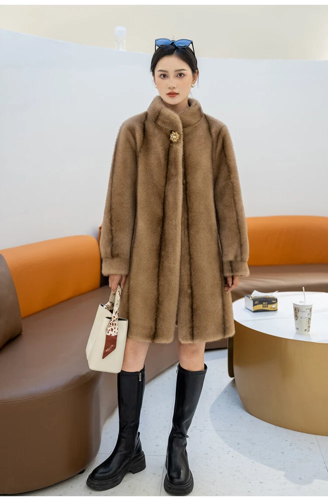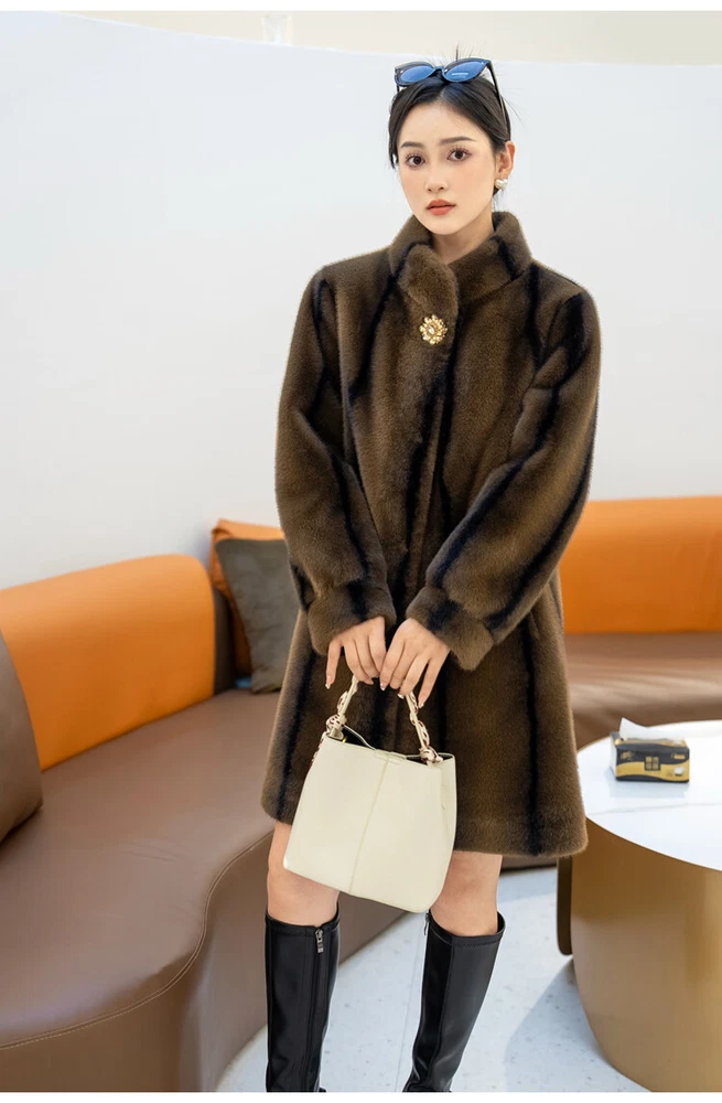 $ 76.99Winter Thickened Long Suit Collar Faux Mink Fur Jacket Furry Coat Parka Winter