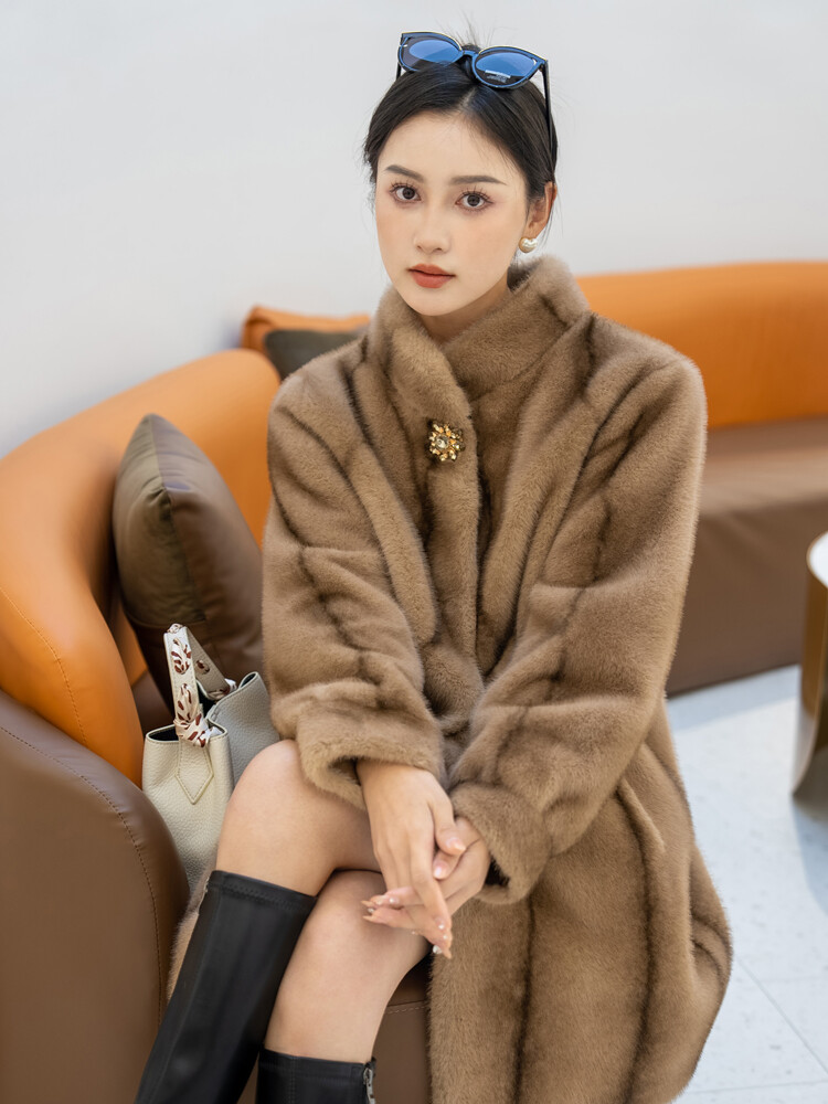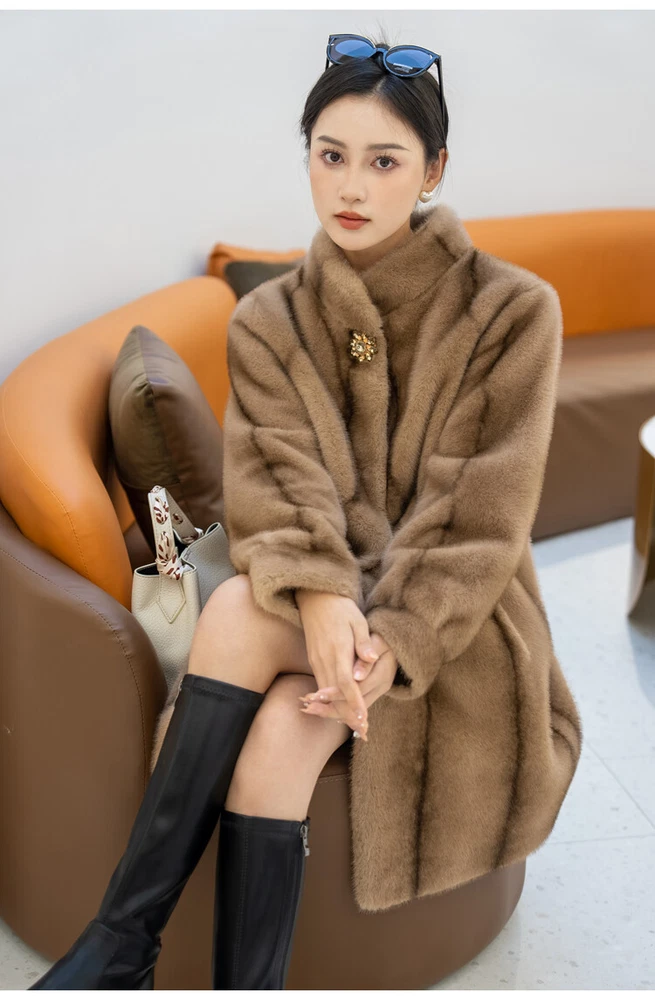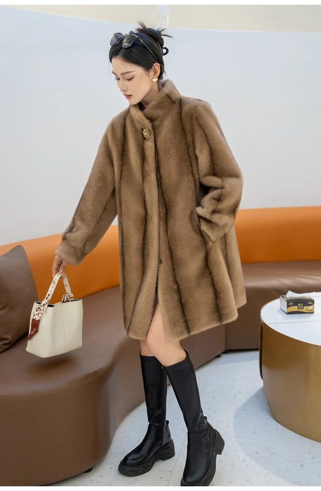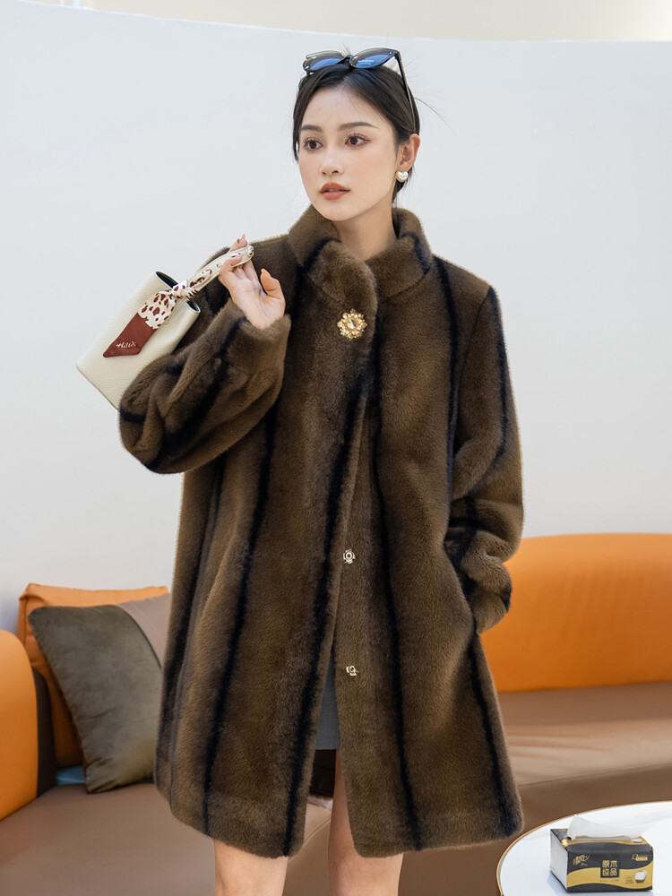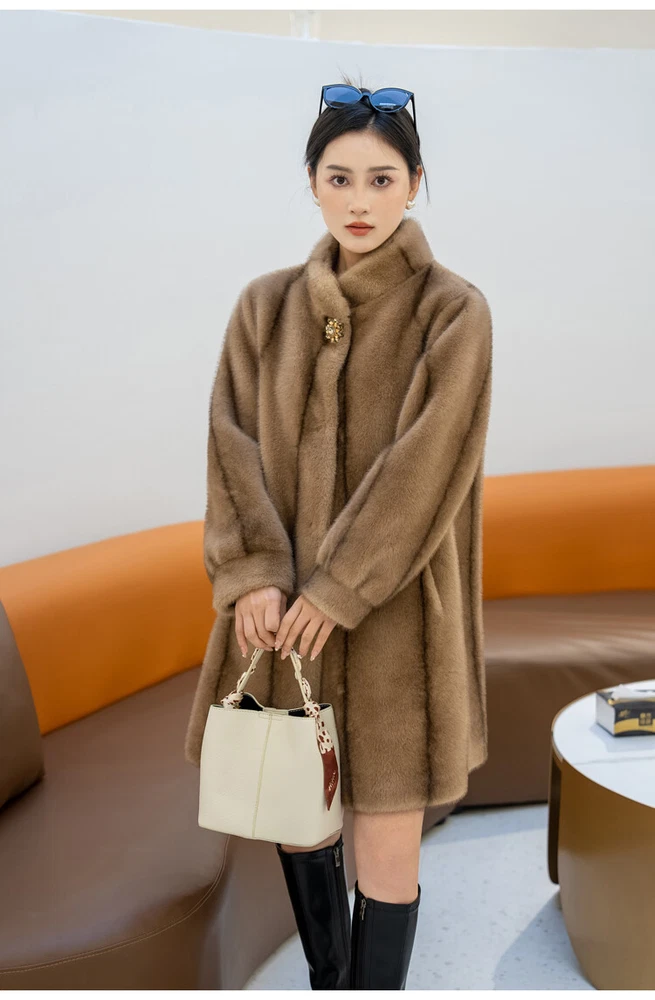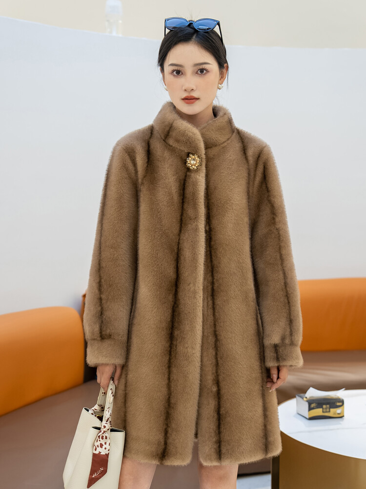 $ 76.99Winter Thickened Long Suit Collar Faux Mink Fur Jacket Furry Coat Parka Winter