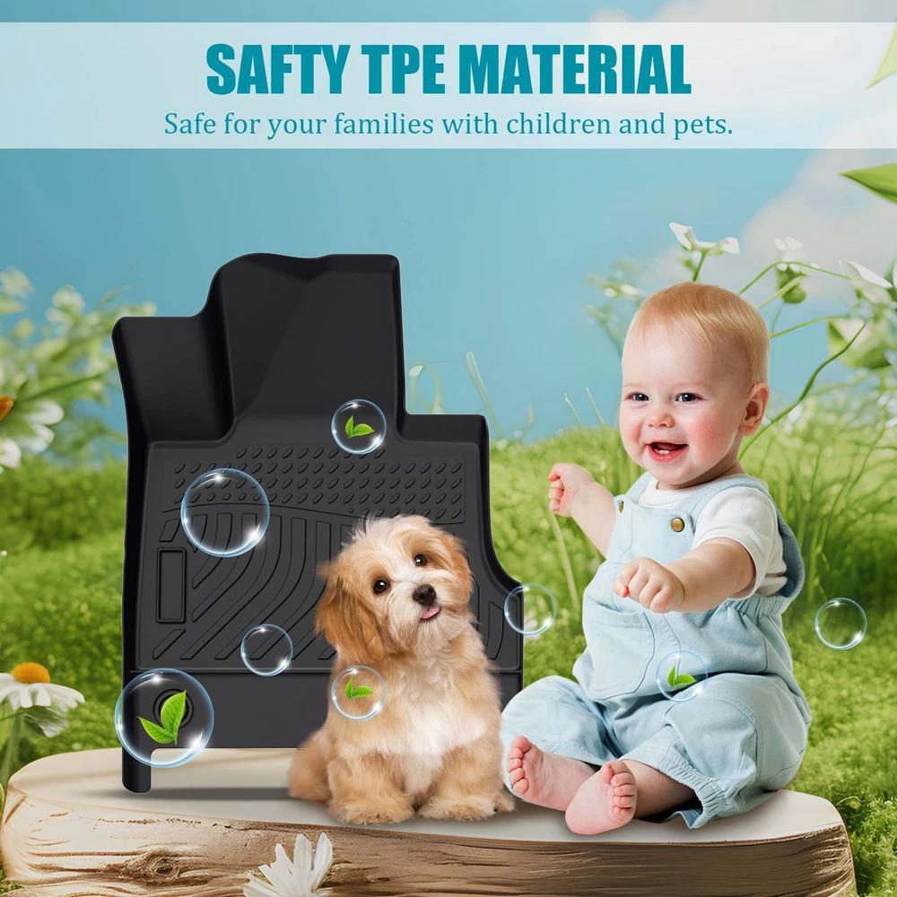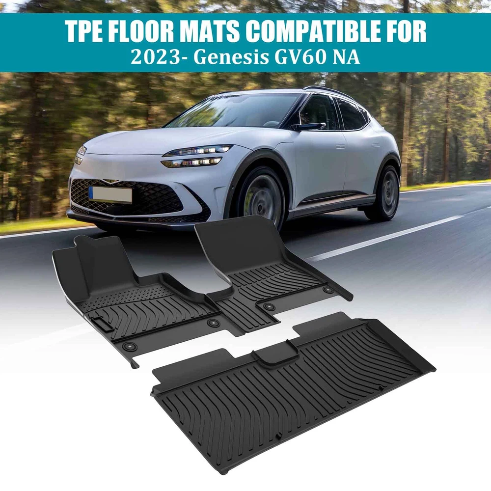 Specification Condition: New Package Weight: (lbs): 12.13 Package Dimensions: (inch): 29.53"L x 22.05"W x 7.87"Th color: Black Number of Pieces: 3pcs Material: TPE Rubber Type: Floor Mat Set Warranty: 90 days warranty for quality problems Fitment 2023-2024 Genesis GV60 Features & Benefits Product Introduce: Introducing our FLOOR MATS, a highly practical auto accessory designed to elevate the style and comfort of your vehicle's interior. These mats not only add a touch of sophistication to your car but also serve a practical purpose by protecting the floor from water stains and dust pollution. Designed with safety in mind, our floor mats effectively prevent slipping, thereby reducing potential safety hazards. Crafted with high quality materials, these floor mats are specifically designed to ensure a perfect fit for your vehicle. They are easy to install and maintain, offering you convenience and saving you time. Moreover, our floor mats are resistant to fading and staining, ensuring they maintain their sleek look over time. They are an ideal accessory to keep your vehicle looking pristine at all times. Order your FLOOR MATS today and enjoy an enhanced driving experience. Don't miss out on the opportunity to add this stylish and practical accessory to your vehicle! Note: Only sold in the USA (Excluding Hawaii, Alaska, Puerto Rico, Guam, Virgin Islands, American Samoa, Northern Mariana Islands, Palau, Federated States of Micronesia, Marshall Islands, AA, AE, AP). Warranty: If there's any problem, please feel free to contact us with your car's VIN # and the pictures or videos to show the problem within 30 days, we’ll try our best to solve it and make you satisfied. After using, the item’s warranty is 1 year, only for replacement and no refund. Hope you know.