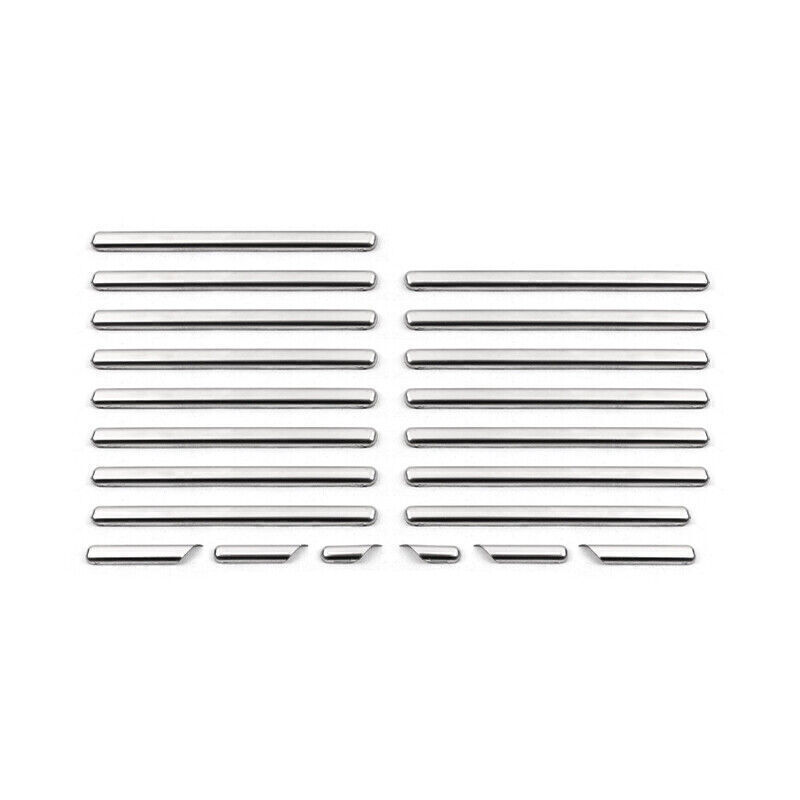 Manufacturer Part Number: Body Moldings Universal Fitment: No Vintage Part: No Features: Easy Installation, Heat Resistant, No Drilling Required, Self-Adhesive, Waterproof UPC: Does not apply Color: Chrome Placement on Vehicle: Front, Left, Lower, Rear, Right, Upper Number of Pieces: 21 Performance Part: Yes Material: Plastic Type: Bumper Attachment Type: Adhesive OE/OEM Part Number: Exterior Trims Brand: Unbranded gtin13: Does not apply Manufacturer Warranty: 1 Year Country/Region of Manufacture: China Finish: Chrome, Glossy, Polished Chrome Interchange Part Number: No