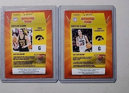 Get your hands on the complete 2 card set of the 2023-2024 Panini Caitlin Clark Collection Crunch Time Insert. This set features cards of the Indiana Fever and Iowa Hawkeyes player, Caitlin Clark, and is a must-have for any basketball trading card collector. The cards are standard size and come from the original manufacturer, Panini. The set is an original and licensed reprint, with English language and no autographs. It is a sports trading card type, with features including an insert and a season of 2023-24. The cards are not vintage and were made in the United States. Add this set to your collection today!