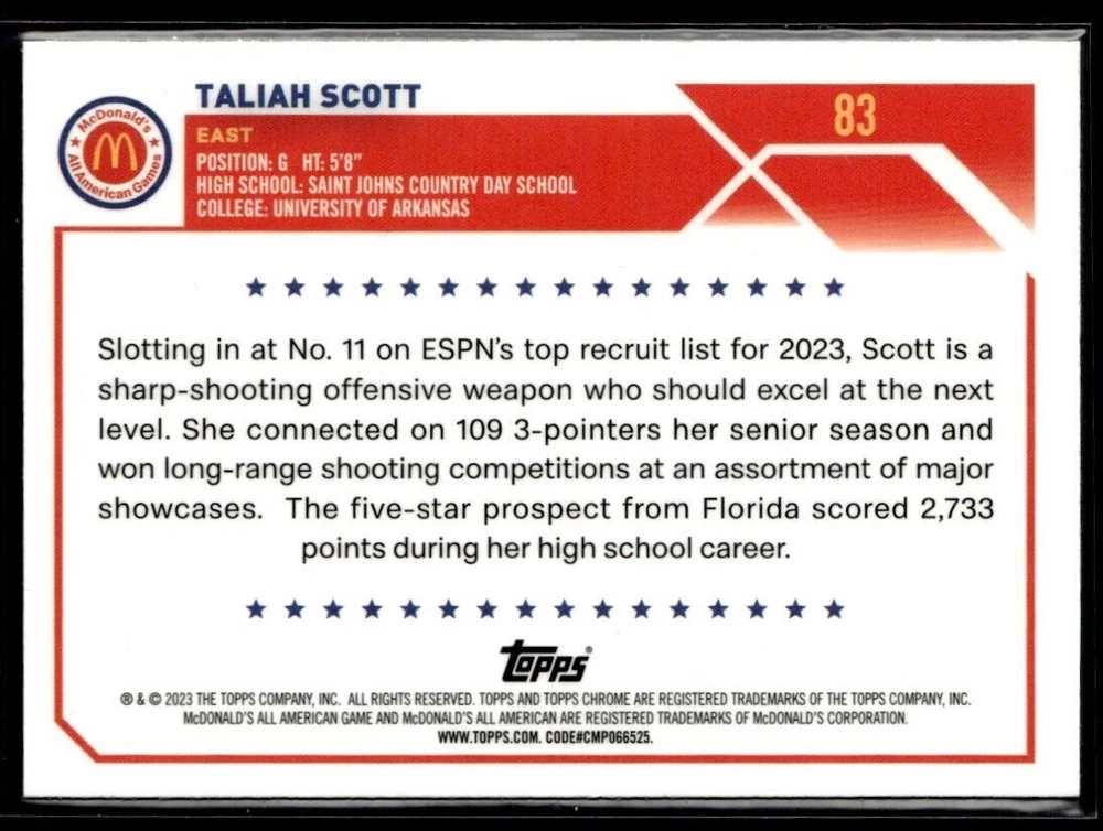 2023-24 CHROME TALIAH SCOTT MCDONALD'S ALL AMERICAN #83 RAY WAVE REFRACTOR