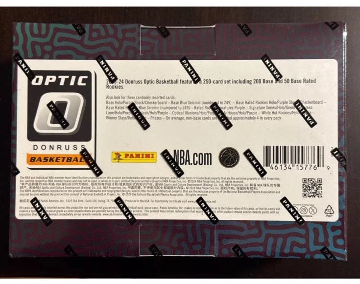 Configuration:BoxSet:2023 Donruss OpticCard Size:StandardCountry/Region of Manufacture:United StatesNumber of Boxes:1Type:Sports Trading CardYear Manufactured:2024UPC:0746134157769Autograph Authentication:DonrussFeatures:Exclusive, Insert, Parallel, Rookiegtin13:0746134157769Manufacturer:PaniniTeam:Boston Celtics, Los Angeles Lakers, San Antonio SpursLeague:National Basketball Association (NBA)Language:EnglishMaterial:Card StockNumber of Cards:56Season:2023-24Sport:BasketballAutographed:No