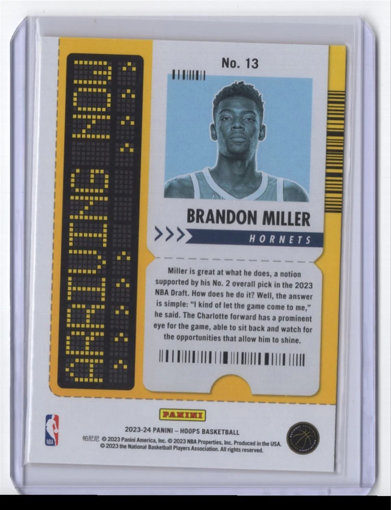 About Me Other Listings Feedback Add to Favorites Contact Me Striking Cards 901 2023-24 Panini Hoops Arriving Now Brandon Miller Rookie Charlotte Hornets #13 No stock photo / These are real scans or pictures Details Description: Brandon Miller Category: Basketball Year: 2023 Product: Panini Hoops Set: Arriving Now Team: Charlotte Hornets Card Number: 13 Rookie: Yes Dimensions: 4" x 3" SKU: BK B0001 R01 G (370) Listing By Kronocard trading cards software v2.6.5.5