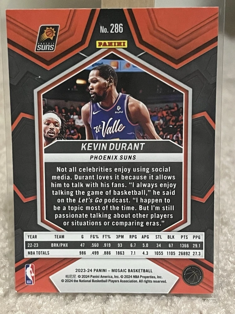 2023-24 Panini Mosaic Base City Edition Kevin Durant Phoenix Suns #286