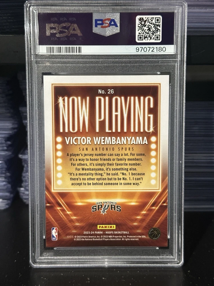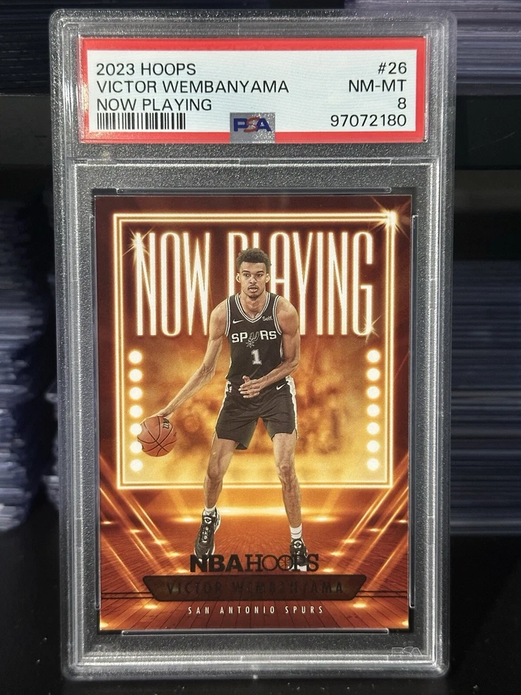 Series:Panini NBA HoopsInsert Set:Now PlayingFeatures:Rookie, InsertPlayer/Athlete:Victor WembanyamaCard Number:26brand:PaniniTeam:San Antonio SpursSeason:2023-24League:National Basketball Association (NBA)Manufacturer:PaniniSport:BasketballSet:2023-24 Panini NBA Hoops