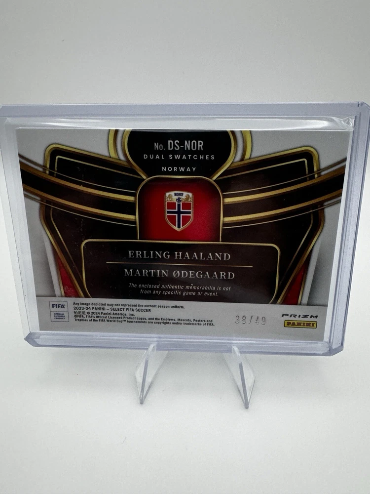 2023-24 Panini Select FIFA - Dual Swatches Purple Prizm #DS-NOR Erling Haaland, Martin Odegaard /49 (MEM)