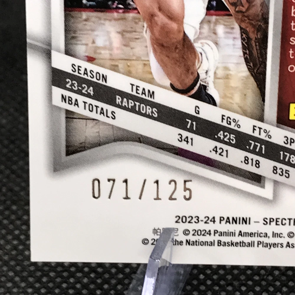 Season: 2023-24 Sport: Basketball Vintage: No Original/Licensed Reprint: Original Print Run: 125 Manufacturer: Panini Player/Athlete: Gary Trent Jr Country/Region of Manufacture: United States Card Size: Standard Card Number: 31 Team: Toronto Raptors League: National Basketball Association (NBA) Card Thickness: 55 Pt. Features: Parallel/Variety, Serial Numbered, Collectors Edition, Exclusive, Hologram, Short Print Parallel/Variety: Celestial Year Manufactured: 2024 Type: Sports Trading Card Autographed: No Set: 2023-24 Panini Spectra Basketball Language: English