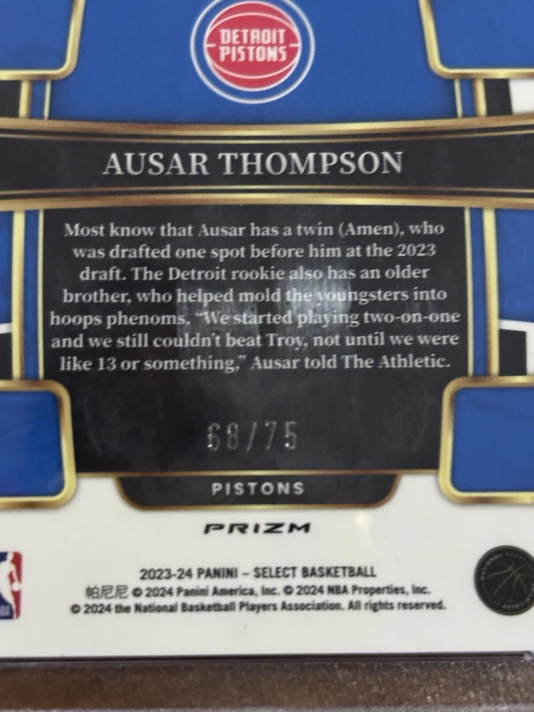 Home✨2023-24 Select Ausar Thompson Concourse White Disco Prizm Rookie RC /75 PSA 10